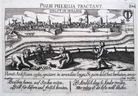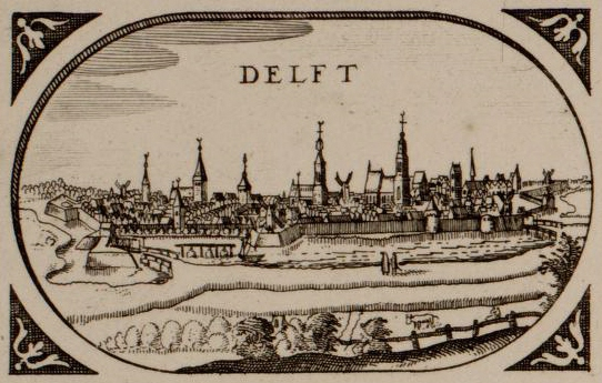 1648Delft in border print from Leonis Hollandiae by Visscher, published in 1648 |