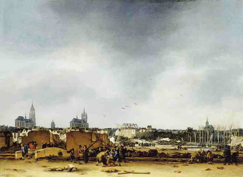 A view of the devastation caused by the gunpowder explosion in October 1654 painted by Daniel Vosmaer, a Delft native like van der Poel. |