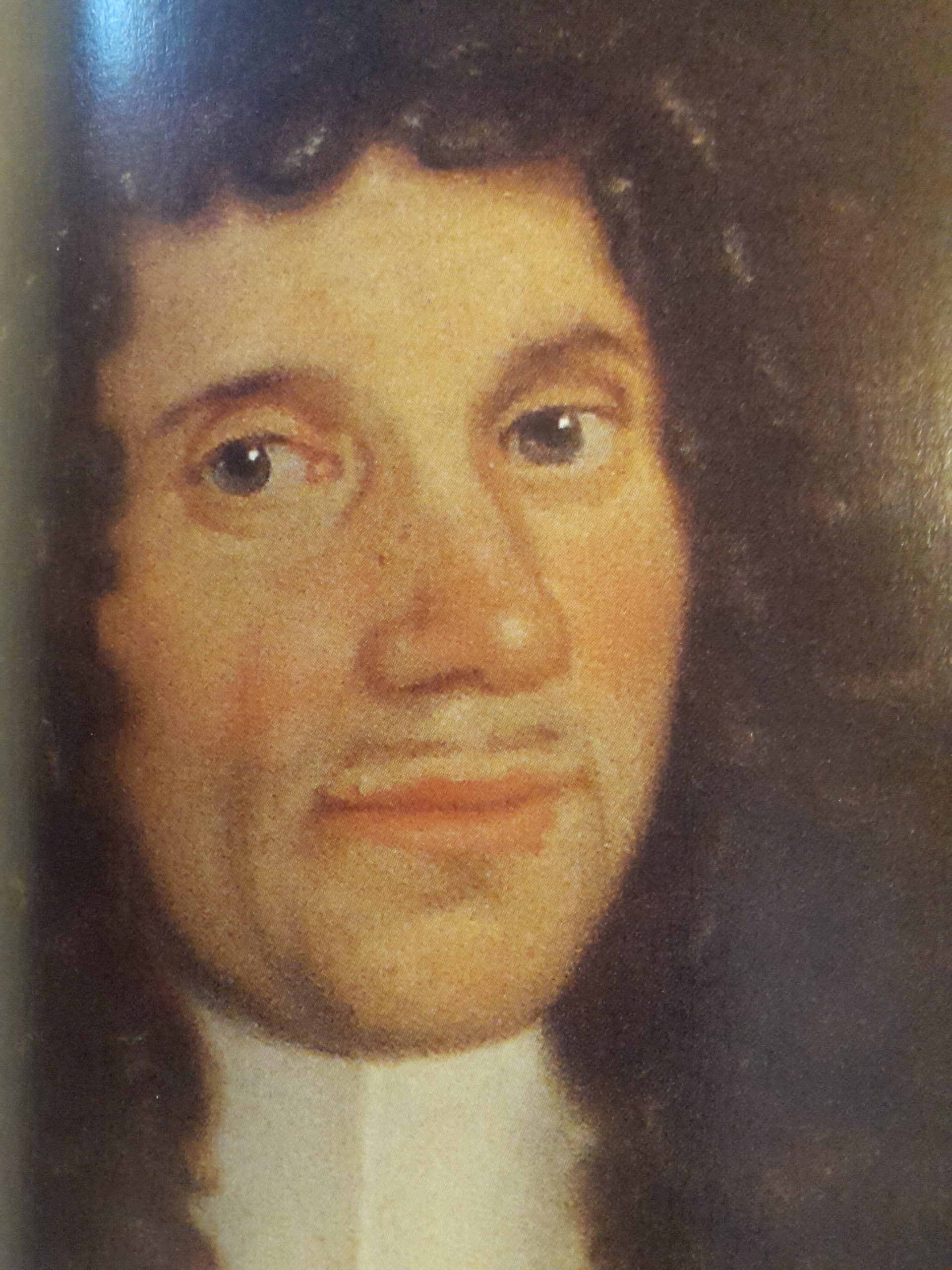 Detail of portrait of Antony van Leeuwenhoek by Johannes Verkolje in 1686, mezzotint.