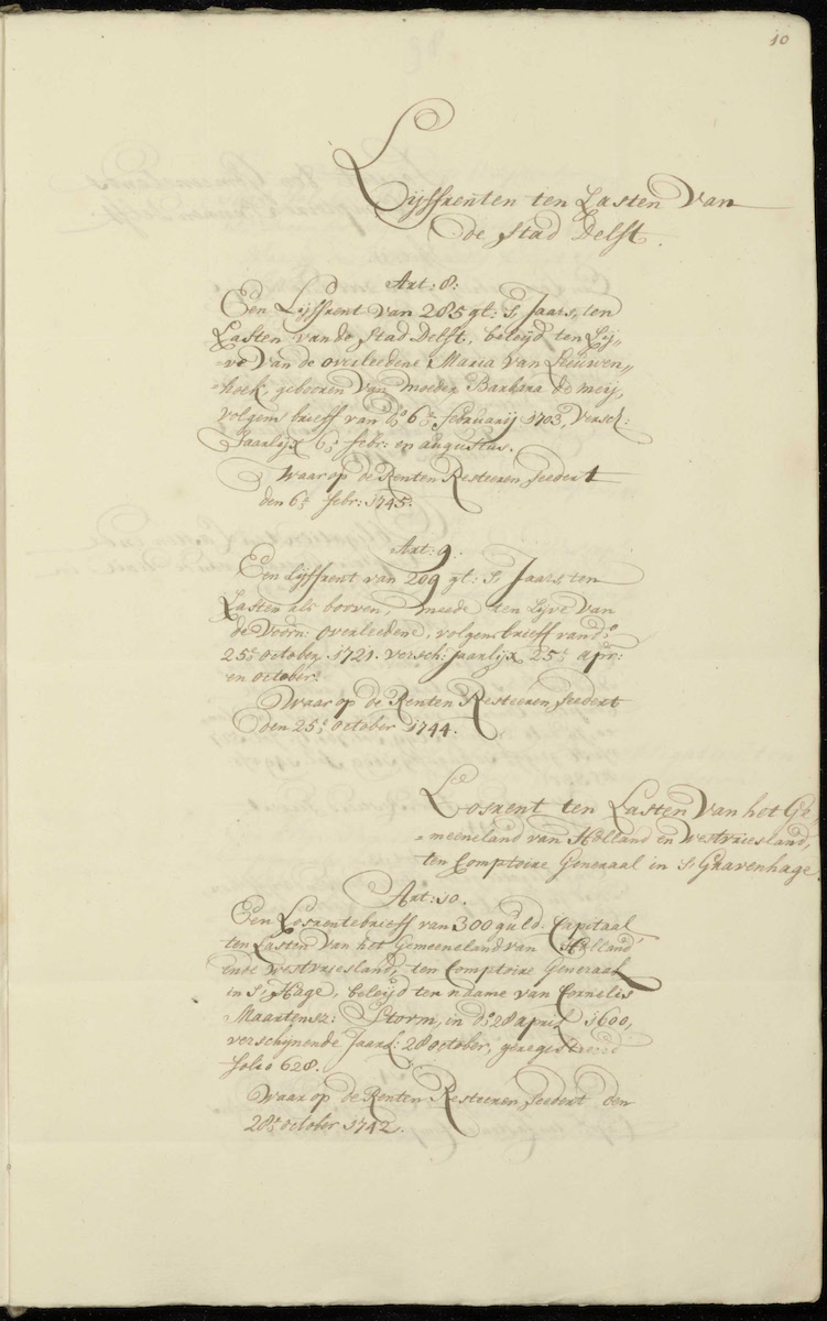 - The annuity in article 7 (right, click to enlarge) is not dated in the original. It appears in the section titled: Life annuities --- of the province's Delft office (Geemeneland van Holland en Westvriesland, ten comptoire binnen Delft).