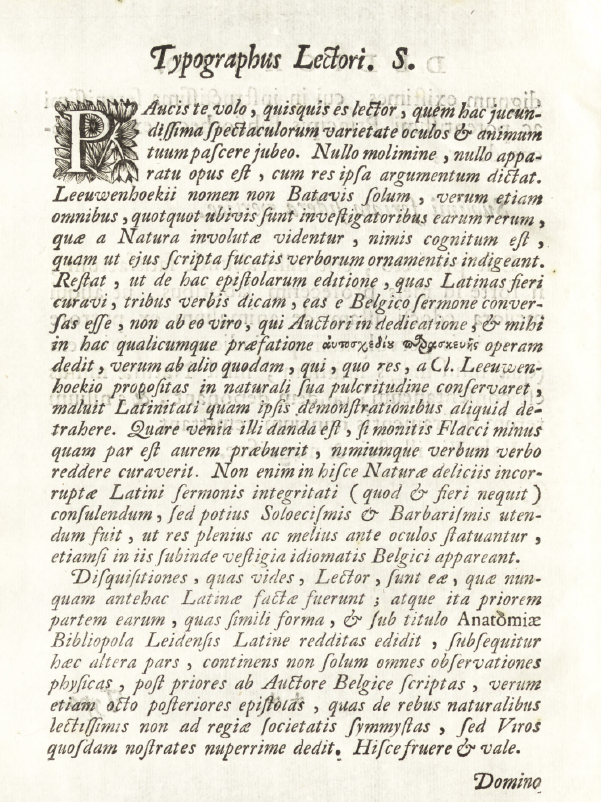 The title page came next and then a dedication from Leeuwenhoek to Antonio Magliabechi.