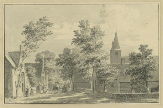 Benthuizen today - It has fewer residents today than Warmond. The oldest structure seems to be the Molen de Haas, a grist mill built more than a century after van Leeuwenhoek lived there. Today, nothing remains in Benthuizen from the 17th century. The engraving above was made by Andries Schoemaker (1660-1735), an Amsterdam businessman who spent his last ten summers touring the Dutch countryside and making the drawings on which this plate is based. The pen and ink below is by Hendrik Tavenier from the late 1700's.
