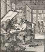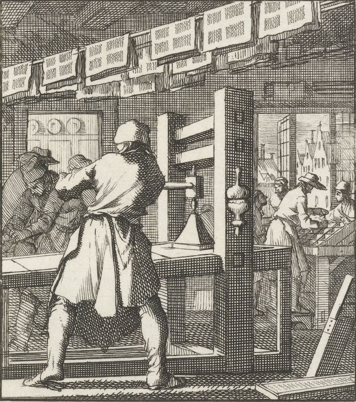 Who actually published it? The bookseller lists it as Leiden in 1695, yet the volumes were published separately from 1695 to 1697 and the final letter (Leeuwenhoek's # 107) was written to Hendrik van Bleyswijk on September 27, 1696. The two volumes from 1696 were originally printed in Leiden by Boutesteyn. The other two volumes, from 1695 and 1697, were printed by Kroonevelt, who lived next door to Leeuwenhoek on the Hippolytusbuurt in Delft. Because the Delft volumes were later, I suspect that the volumes in the photo were bound in Delft in 1697. Bookbinding was a separate craft, and Kroonevelt or Leeuwenhoek would have purchased that service separately. Who provided it, we'll never know.