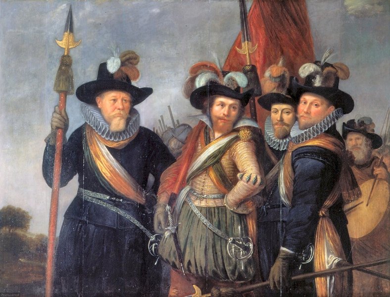 The fourth district, the Blue Banner (Blauw vendel), was everything north of the third district. It was the largest but had the fewest people. While group portraits of the various cities' civic guards were common at the time, there are only four of members of Delft's