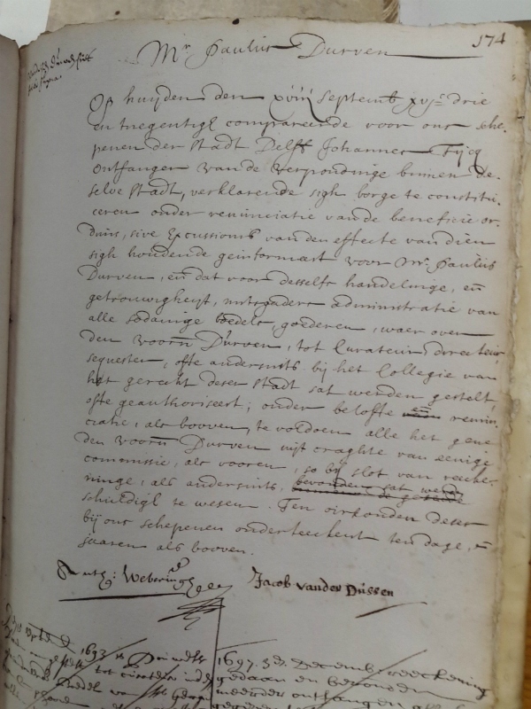 ORA 318 5th Register of Curators p. 174 Paul Durven's commission, 1693 |