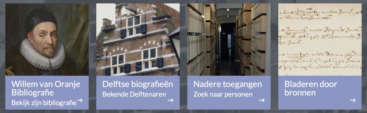 The most recent addition to the set of online resources being developed by the dedicated archivists at Gemeentarchief Delft. As shown on the screenshot below, it has a bibliogrphy of Willem van Orange and the short biographies from the Heraldisch Bureau Nagtegaal. The section most relevant to Leeuwenhoek is the Nadere toegangen, Further access. Bladeren door Bronnen = Browse Sources.