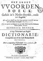 In 1648, Hendrick Hexham (1585?–1650?), an ex-soldier, published Het Groot Woordenboeck, the first Dutch-English / English-Dutch dictionary, including a grammar. The English-Dutch part was published in 1648 and the Dutch-English part in 1658, both in Rotterdam by Arnout Leers.