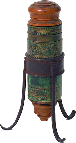 None of the microscopes that Galileo used has survived. The microscope on the left, perhaps designed by Galileo (1564-1642), is attributed to Giuseppe Campani (1635-1715), in which case it would have been made after Galileo's death.