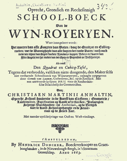 Christiaen Anhaltin's School-Boeck van de Wyn-Royeryen, Amsterdam, 1663 |
