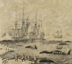 In Leeuwenhoek’s time, whales were hunted because of their crude body-fat. whale-oil (traan) was extracted from the fat by cooking it. The oil was used for fuel in oil-lamps, for making soap, and in the leather industry. Until 1646 the island of Amsterdam near Spitsbergen was used for processing the fat at the factories in Smeerenburg, erected by Delft and other cities. After abandoning Smeerenburg, the oil was made in Holland, especially in the area of the Zaan, but there were also factories in Amsterdam (Nieuwendam) and Rotterdam. The ships took ballast with them in the form of barrels filled with water, later replaced by the whale fat.
