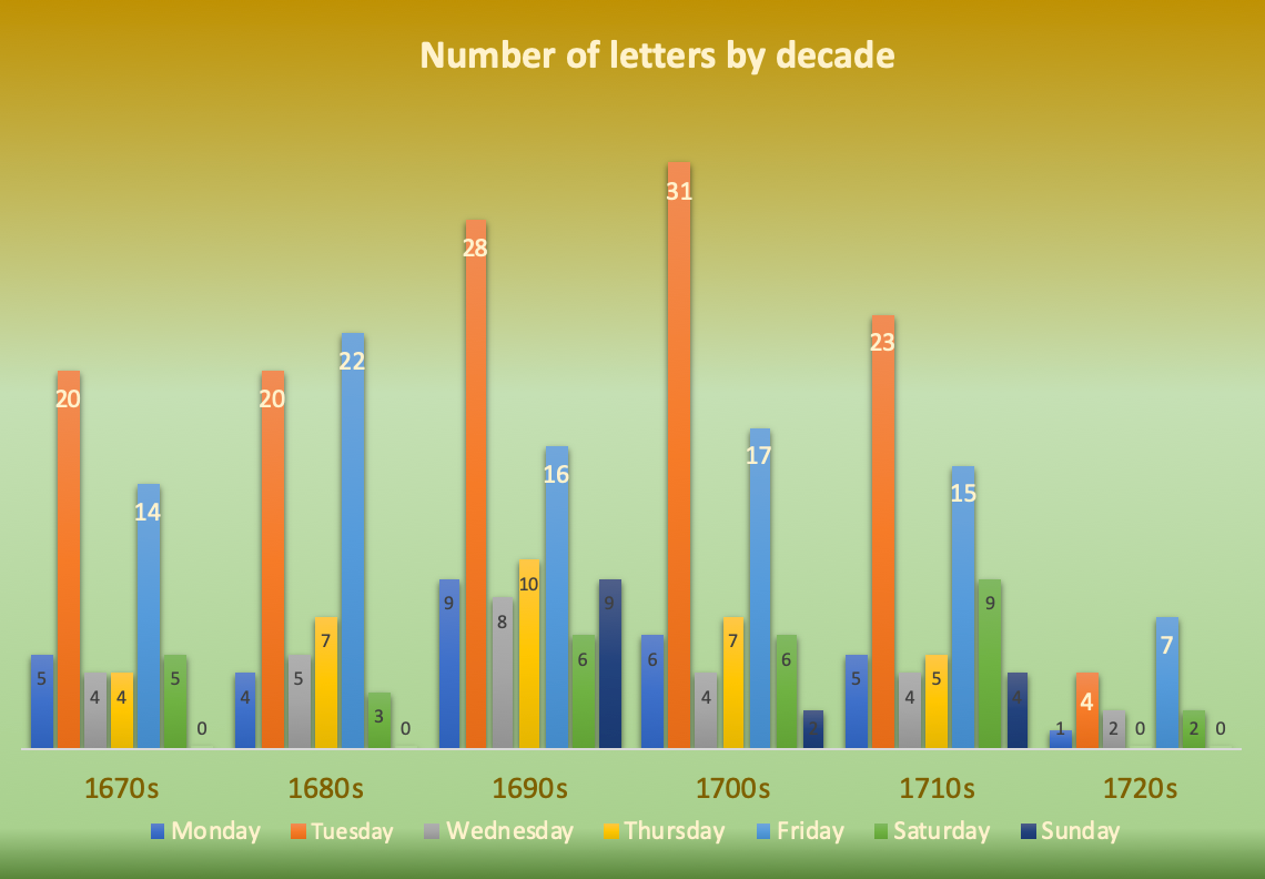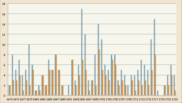 * Only one of them had figures, a letter in 1679 noted with an asterisk on the table above.