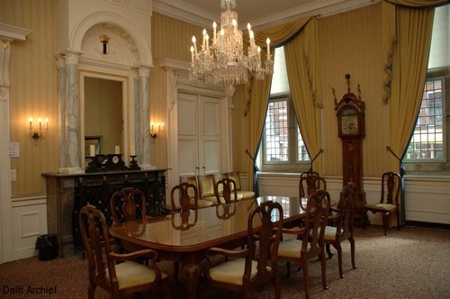 The mayors met in a room in the Stadhuis called the mayor's chamber (burgemeesterencamer). They stored Delft's vital records, especially the charters, in a secure room off this meeting room. The suriving records from Leeuwenhoek's time are inventoried in the Oude Archief Delft.