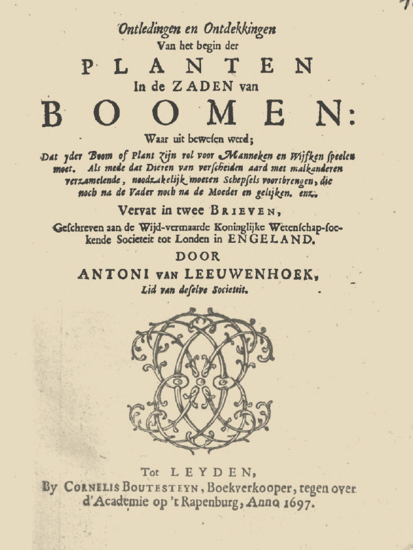 v: Antoni van Leeuwenhoeks r: Ontledingen en Ontdekkingen.