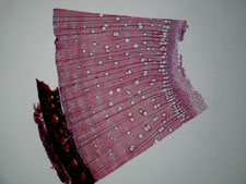 | After Leeuwenhoek gained some fame, people would visit him hoping to see some of his animalcules and other discoveries. Not having sufficiently strong microsopes of their own, they wanted to look through his. At his house, Leeuwenhoek had microscopes and specimens waiting for them. One of the more popular was the one that showed the capillaries in the tail of an eel, in the red section of this chart. In 1673, Leeuwenhoek was able to see single red blood cells circulating through the eel's capillaries, in the yellow part of this chart. Since then, people have claimed that Leeuwenhoek could not have seen things this small. However, human erythrocytes are about 5 um in diameter, well within the resolving power of Leeuwenhoek's best surviving microscope. |