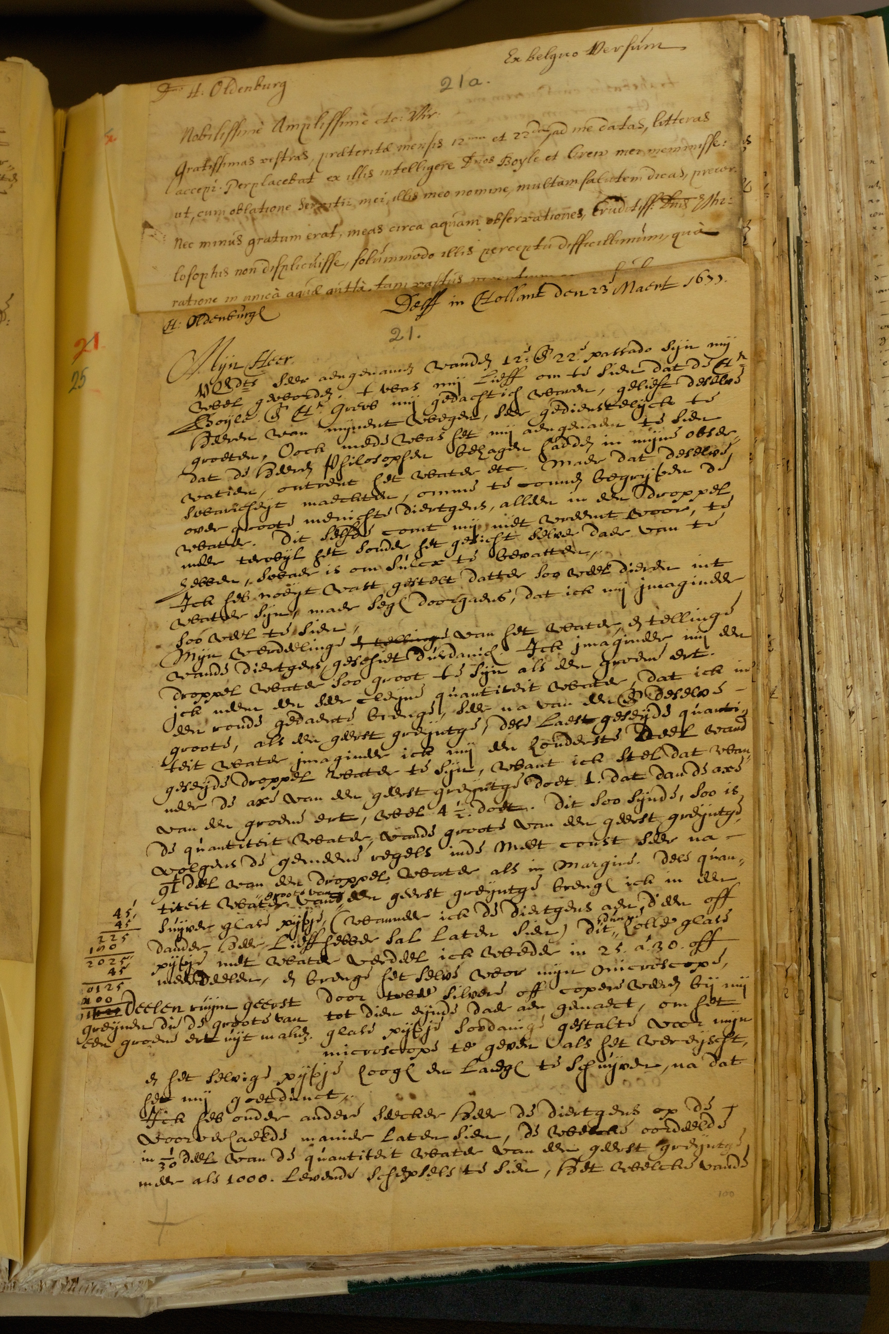 He also included a Latin translation with his Dutch letter (Royal Society EL/L1/26). See the fragment labeled 21a in the photo below.