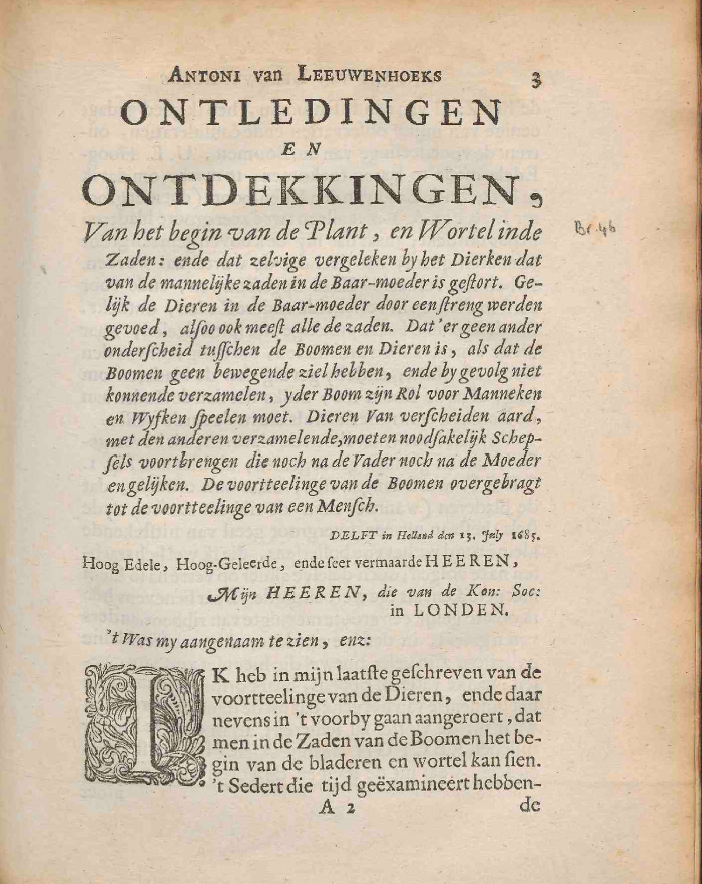 Geschreven aan de Wijd-vermaarde Koninklijke Wetenschap-soekende Societeit tot Londen in Engeland.