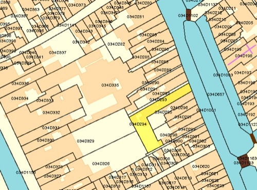 Abraham Maertens Hogenhouck (1580-1641) and his son Maerten Abrahams Hogenhouck (1617-1673) paid the 1632-1654 verponding 338r2. The property has the same buy and sales letter as D0601 now Koornmarkt 20; noted in the margin: “hoort aan de brouwerije de Eenhoorn” - belonging to the brewery the Eenhoorn, which must have been D601. The backs of the two properties are very close to each other.