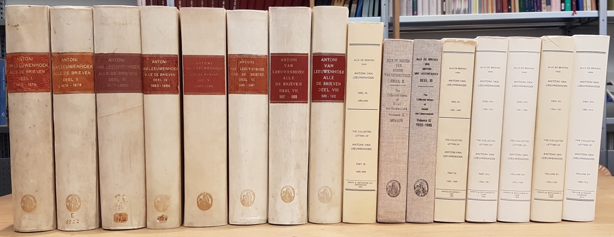 Leeuwenhoek, A. van. Alle de Brieven / Collected letters. Edited and annotated by a committee of Dutch scientists. 15 Volumes. Amsterdam and Lisse: Swets and Zeitlinger, 1939–2014.