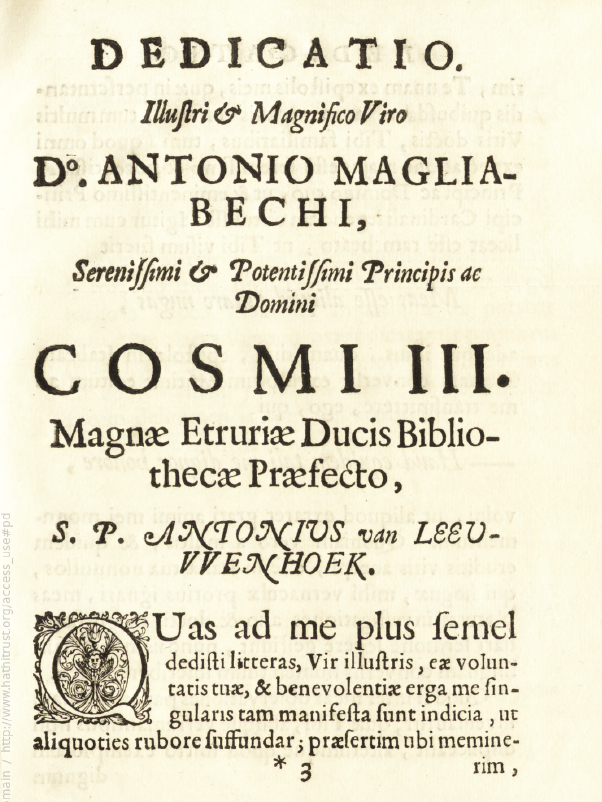 The title page came next and then a dedication from Leeuwenhoek to Antonio Magliabechi.