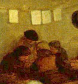 On the right sidebar are three images (click to enlarge) from the second half of the century by Ostade, Luyken, and Steen that show what went on in the schoolroom. On the right are three details of Ostade's 1664 painting, two decades after Leeuwenhoek would have attended such a school.