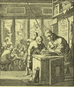 Leeuwenhoek is often described as an auto-didact, a trait that he would have had as a child, too. Much of his training in lens grinding, metal working, and surveying would have been spent with a master in a cooperative learning mode, and his training in anatomy would have been spent in a group. However, it seems likely that as a student he would have spent more time as the individual scholar lower right. Indeed, given how he spent most of his adult life, in solitary, self-initiated observation, Leeuwenhoek would have found this form of active education to his liking. He wasn't one who sat around waiting to be taught.