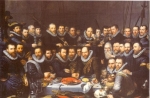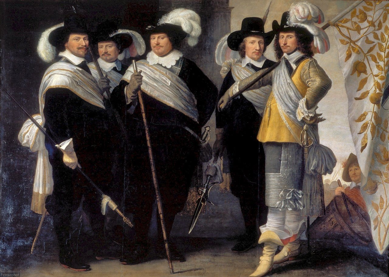 The fourth district, the Blue Banner (Blauw vendel), was everything north of the third district. It was the largest but had the fewest people. While group portraits of the various cities' civic guards were common at the time, there are only four of members of Delft's