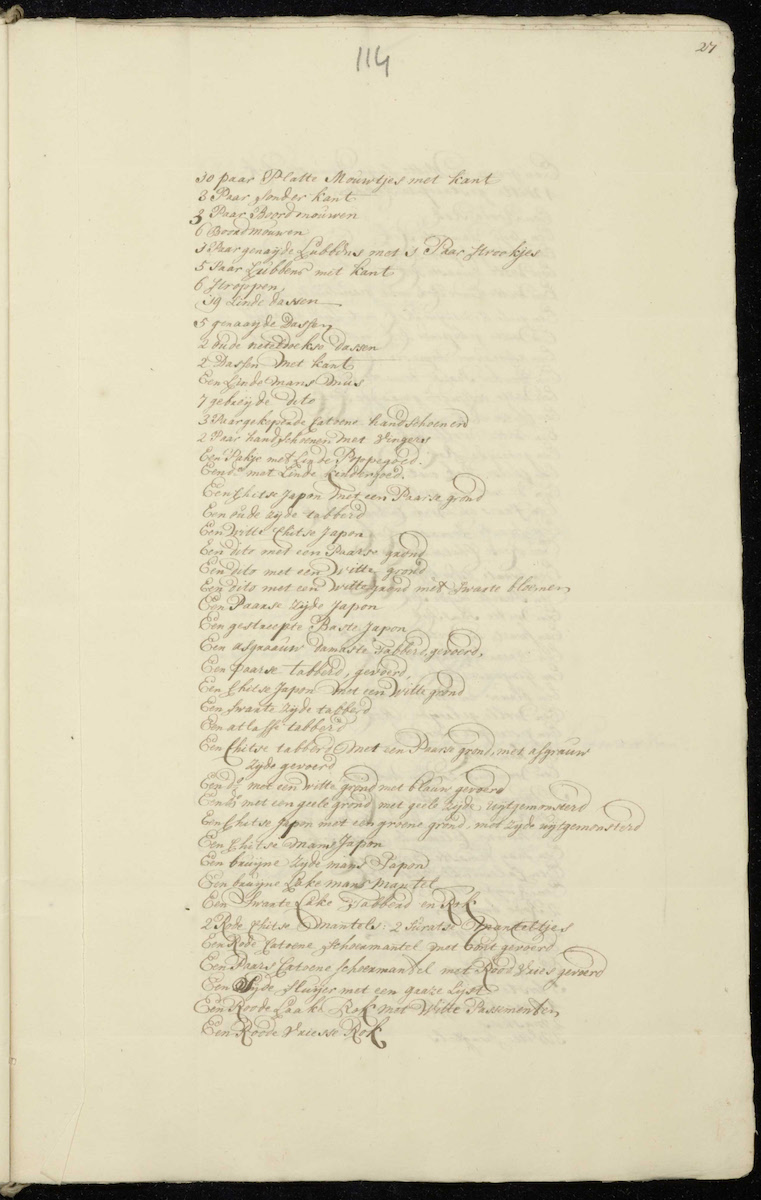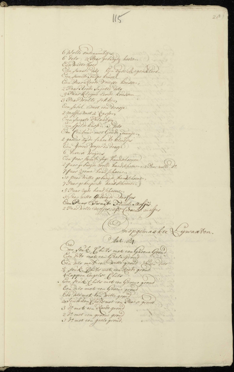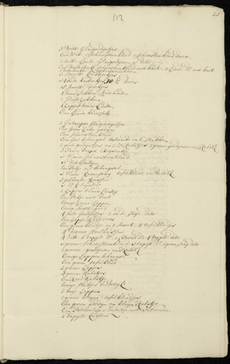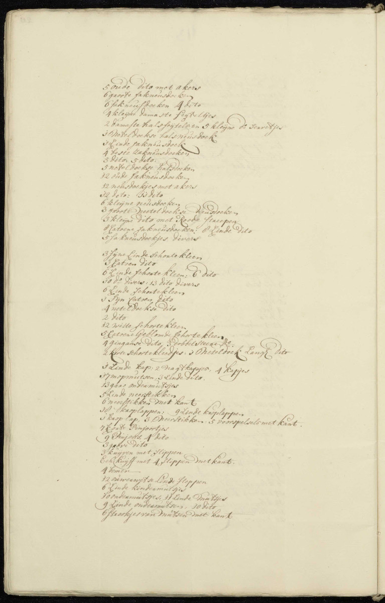| 6 small ditto | 1 muslin halsneuwdoek | 3 large muslin noseclothes |