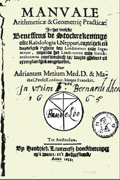 | Adriaan Metius' Manuale Arithmeticae et Geometricae Practicae, Amsterdam, 1633 |