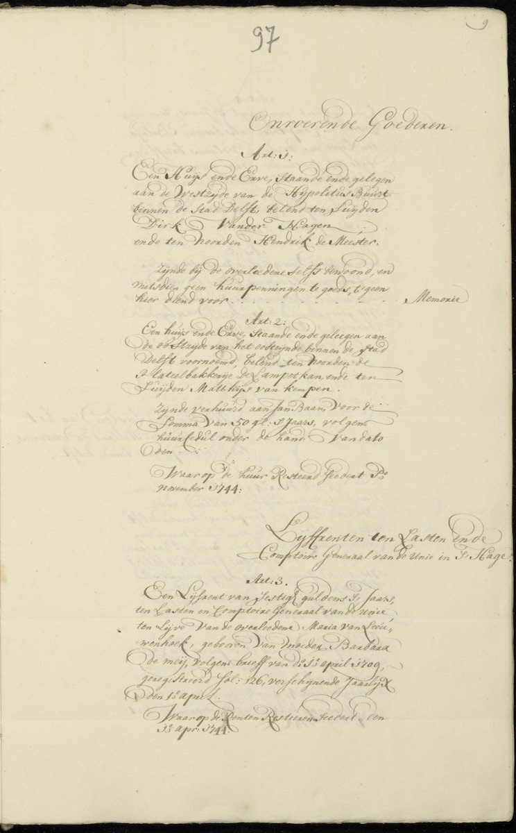 Only three articles in Maria's estate concerned her immovable goods (onroerende goederen). This implies that she and her father had sold any other real estate that they had acquired.
