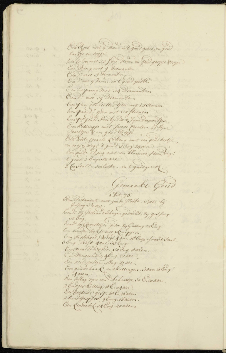 | A needle case (naaldenkooker) | 10 | 8 | A gold chain with a large links (schalmen) 6 thick | 1 | 14 | 8 | |