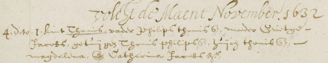 - Thonis - his baptism (see below left, click for large version. Painter Jan Vermeer is on second entry from top. See also detail below) on November 4, 1632