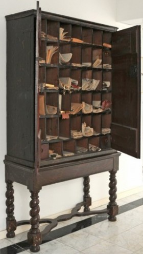 Behind what is available at Digital Arena, the notary archives are available on microfiche. See the Inventaris van het oud notarieel archief, 1574-1842 (ONA - Old Notary Archive). The photograph on the right shows a 17th century Dutch notary's cabinet.