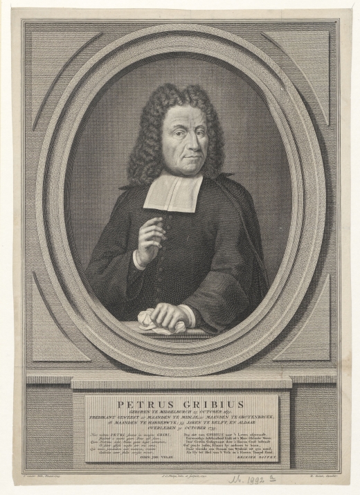 Gribius became pastor in Middelie (Midley) on August 1, 1677, Grootebroek on April 16, 1679, and Harderwijk on April 4, 1680. He became pastor in Delft on October 19, 1681, and preached there for 53 years until he was given emeritus status in September 1734. In 1684, he married Debora van der Heul, of a regent family. They had one daughter, Maria, who married Abraham van Bleiswijck one year before Leeuwenhoek addressed three letters to him that were published in Send-Brieven.