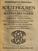 Ontledingen en Ontdekkingen van Sout-figuren van verscheyden Souten: van Levendige Dierkens in de Mannelyke Saden de Baarmoeder ingestort; ende van de Voort-telinge