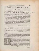 These two letters were paginated continuously, not separately. That is, Letter 44 ends on page 39 and Letter 45 begins on page 41 of Sout-figuren even though it had nothing to do with salt crystals. However, Letter 43 began Leeuwenhoek's investigation of salt crystals and was written just two weeks before Letter 44 in January 1685. It would have made more sense to package Letter 43 and Letter 44 together under the title of Sout-figuren. They were both printed by Boutesteyn in 1685. Nevertheless, Letter 43 was printed as the final letter in Onsigtbare verborgentheden, also continuously paginated, where it began on page 51.