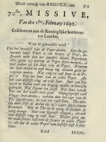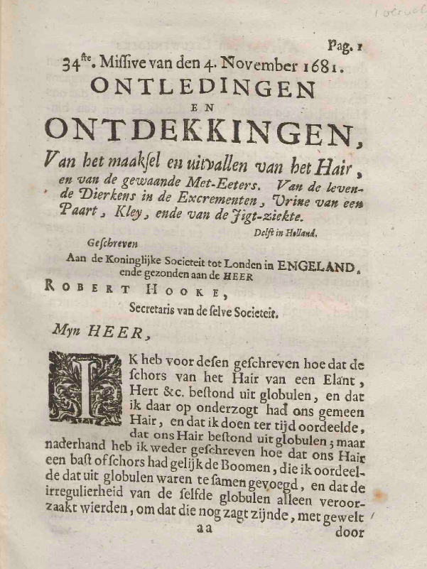 The first six letters in this volume were Letters 32, 33, 37, 39, 40, 41, the six published by Gaesbeeck in 1684 that Leeuwenhoek did not publish in Anatomia Seu Interiora Rerum / Arcana Naturae Microscopiorum or the Continuatio. Of them, only Letter 37 to Christopher Wren and Letters 40 and 41 to Francis Aston had short summaries. They were also unnumbered.