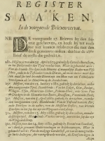 It had a one-page list (left sidebar; click to enlarge) of the main topics in the seven letters titled Eenige van de voornaamste saaken waar van dese Brieven handelen (Some of the main topics that these Letters deal with), summaries of the summaries at the beginning of every letter. There were no page numbers next to the items.