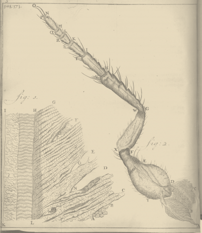 Figure 2: leg of flea showing two muscles, right, and pullers at GF and WX