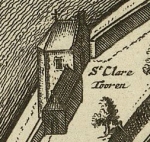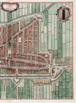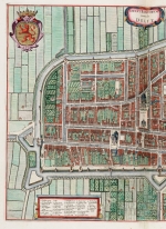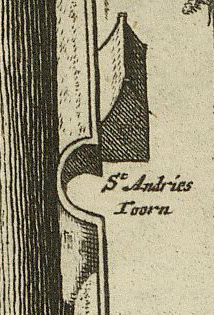 On all the maps, these three round towers look the same. On the Kaart Figuratief, they are square buildings flush with the city wall. The round part, more a hemisphere or half-tower, jutted from the wall over the little ledge into the singel. Two of the three towers survive; the Rietveltse Toren was recently renovated.