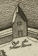 These two seem to be of the same design as the ones on the eastern section of the singel that rise above the wall enough for a window and enough space below for another set of windows. Both of these show the door in the flat back wall flush with the city wall.